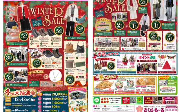 NEW 2025年12月11日今月のイベントさくらも~る ウインターセール&冬の大抽選会のお知らせ(12/12-12/14)12月12日(金)~12月14日(日) ウインターセール&冬の大抽選会を開催! WEBチラシはこちらから