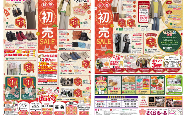 2026年1月1日今月のイベントさくらも~る 2026年初売りのお知らせ(1/2-1/4)1月2日(金)~1月4日(日) さくらも~る専門店街 新春初売を開催! 【さくらもーる お年玉企画】 1,00 […]