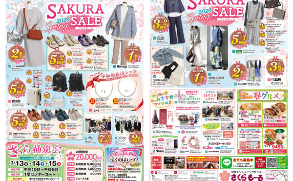 NEW 2026年3月12日今月のイベントさくらも~る さくらセールのお知らせ(3/13-3/15)3月13日(金)~3月15日(日) さくらも~る専門店街で、さくらセールを開催! 『さくらセール』WEBチラシはこちらから