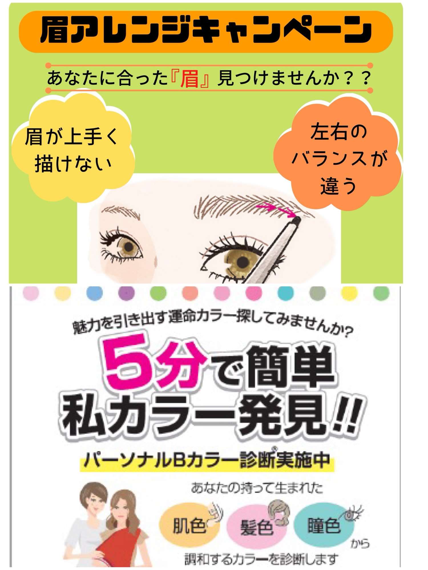 2025年10月14日 / 最終更新日 : 2025年10月8日 さくらも~る ショップニュース 1F フジヤ 【『パーソナルカラー診断』『眉アレンジ』実施中!!】 「パーソナルカラー診断」「眉アレンジ」どちらか1つのメニューを無料で体験できます♪ ---さらに選べる体感コース--- 肌に合わせた➀ベースメイク体感 or ➁最新美顔器体験のいずれかをお選びいただけます! ・参加費無料 体験時間60分ほど ※当日の混み具合ではお待ちいただく場合がございますので予めご了承ください。